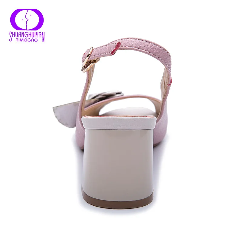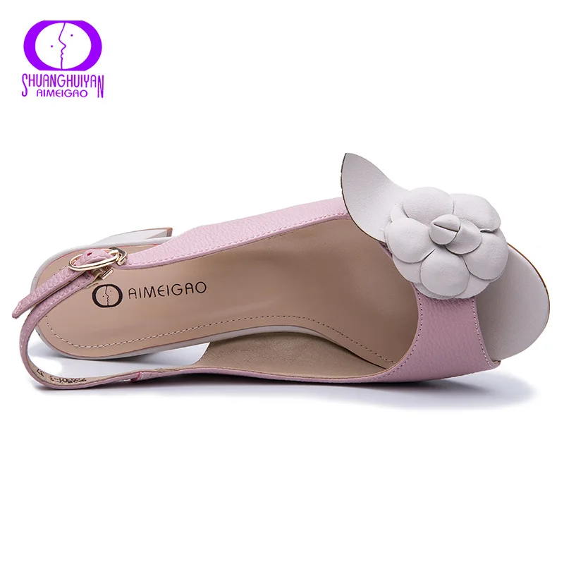 Aimeigao New Summer Peep Toe Sandals Comfortable Thick High Heel Sandals Soft Leather Shoes For Women Big Size Summer Shoes