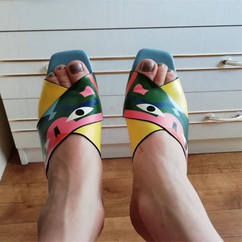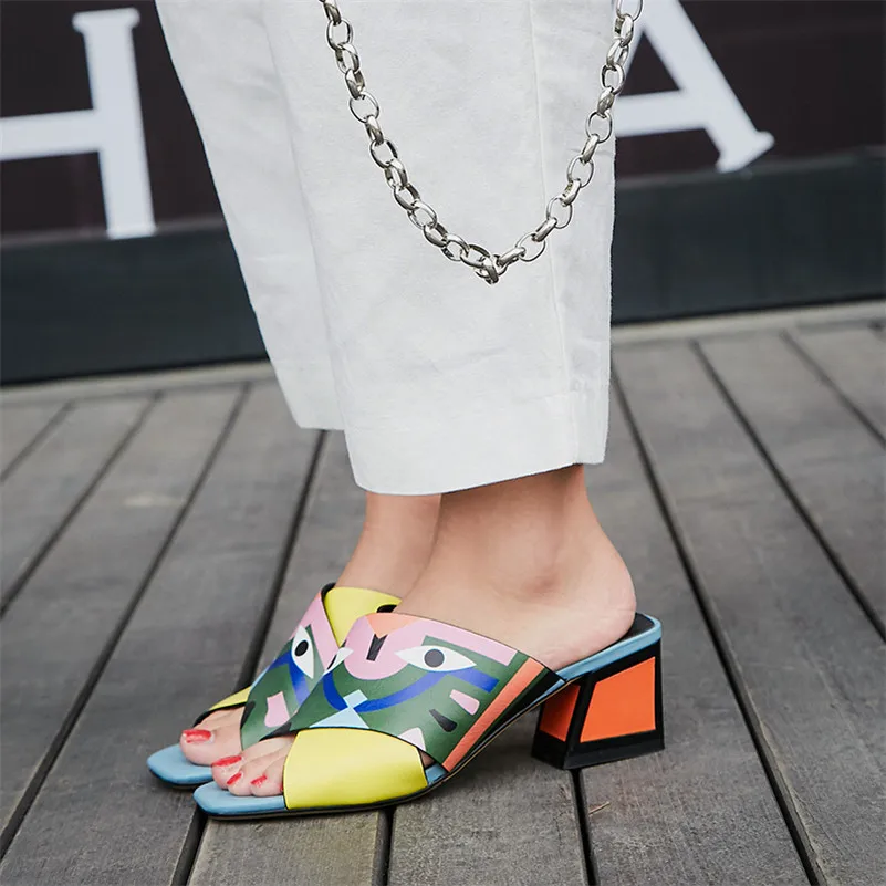 Fedonas Fashion Mixed Colors Pu Leather Women Pumps Classic Rome Square Toe Hoof Heels Summer Sandals Mules Casual Shoes Woman