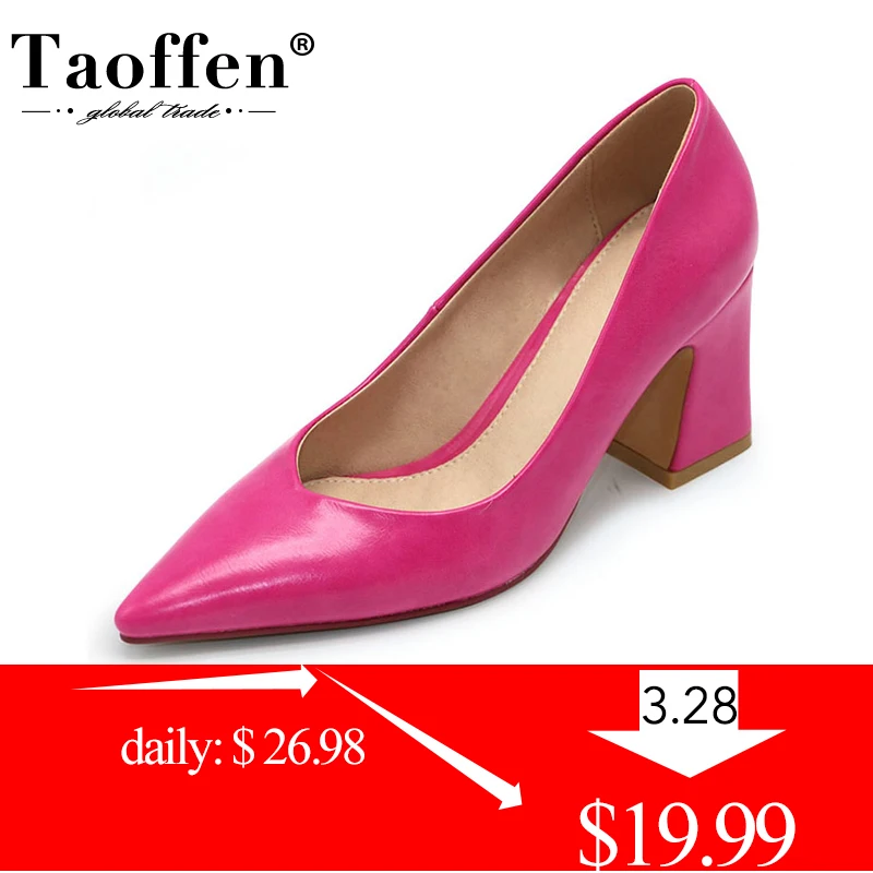 Taoffen 4 Color Women Square Toe Pumps Genuine Leather High Heels Shoes Women Hot Sale Office Work Party Pumps Size 33-40