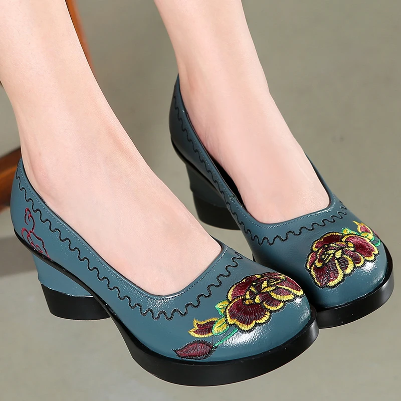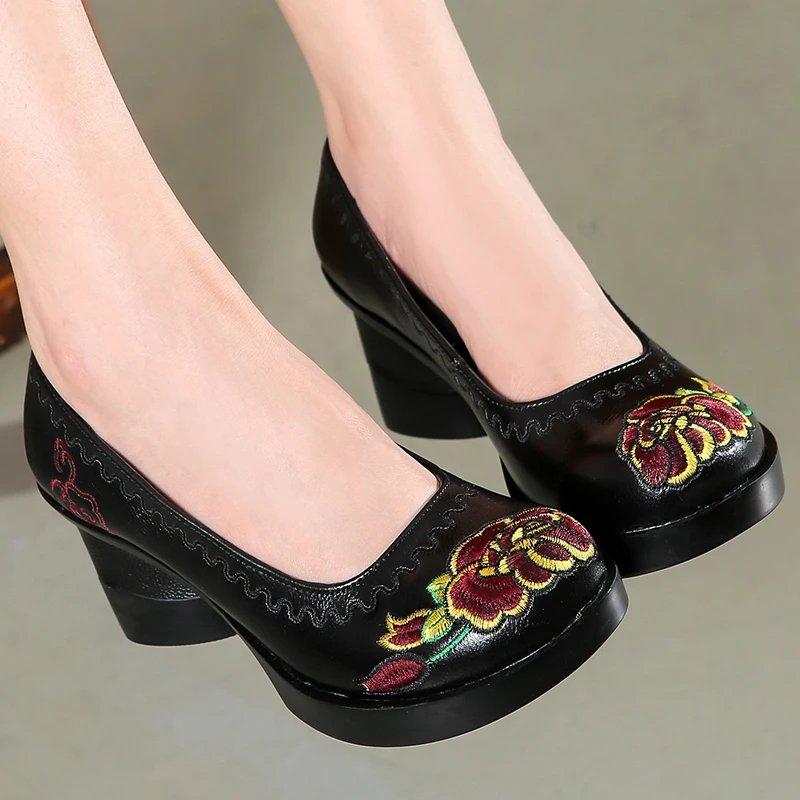 Special Offer Gktinoo Spring Women Pumps Retro Embroider Lady .5cm High Heels Slip On Platform Pumps Handmade Wo with Free Shipping Worldwide!