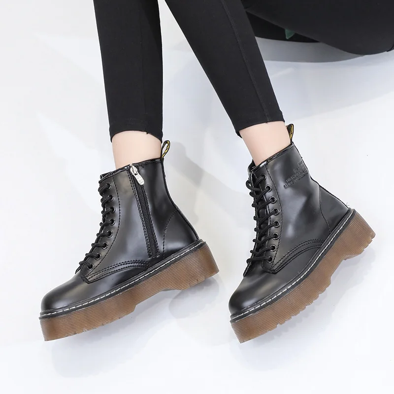 2020 Leather Boots For Martin Boots Platform Shoes Women Boots Motorcycle Shoes Ankle Boots For Women Booties Botas Mujer