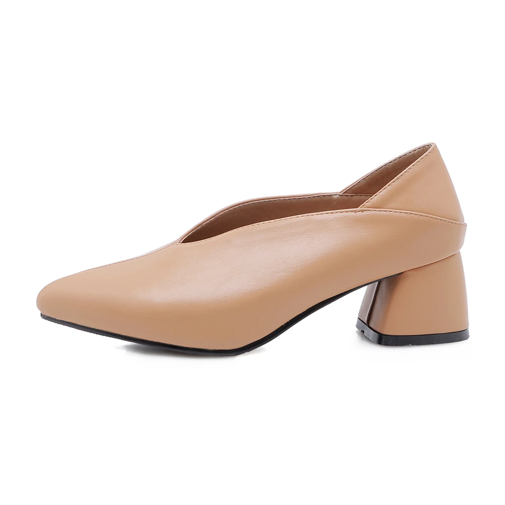 Meotina Women Shoes Pumps Pointed Toe Thick Heels Spring Ladies Low Heels Slip On Casual Shoes 2020 White Red Large Size 9 42 43