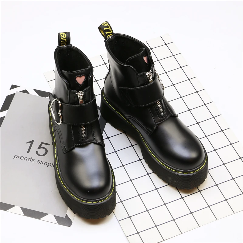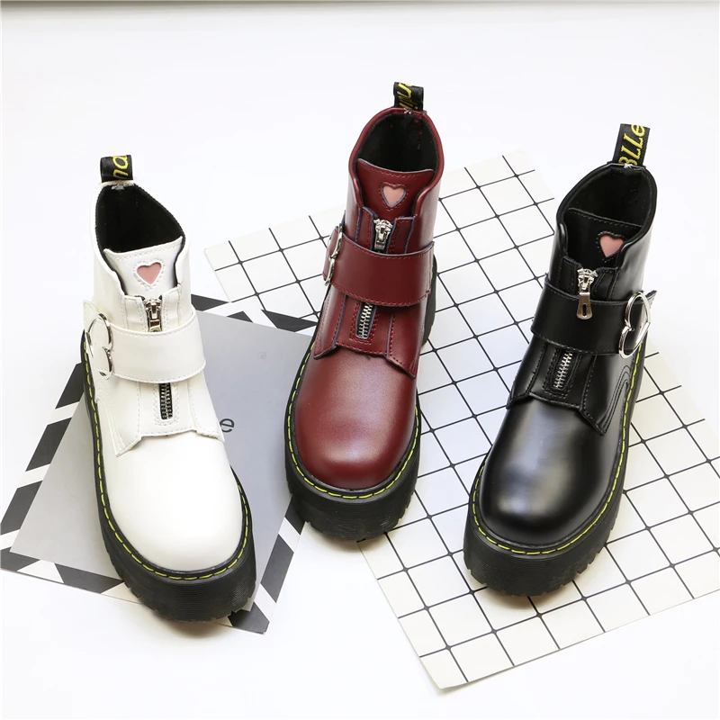 Discount Offer Spring Autumn Motorcycle Boots Women Fashion Love Heart Round Toe Platform Wedges Combat Boots Ladi with Free Shipping Worldwide!